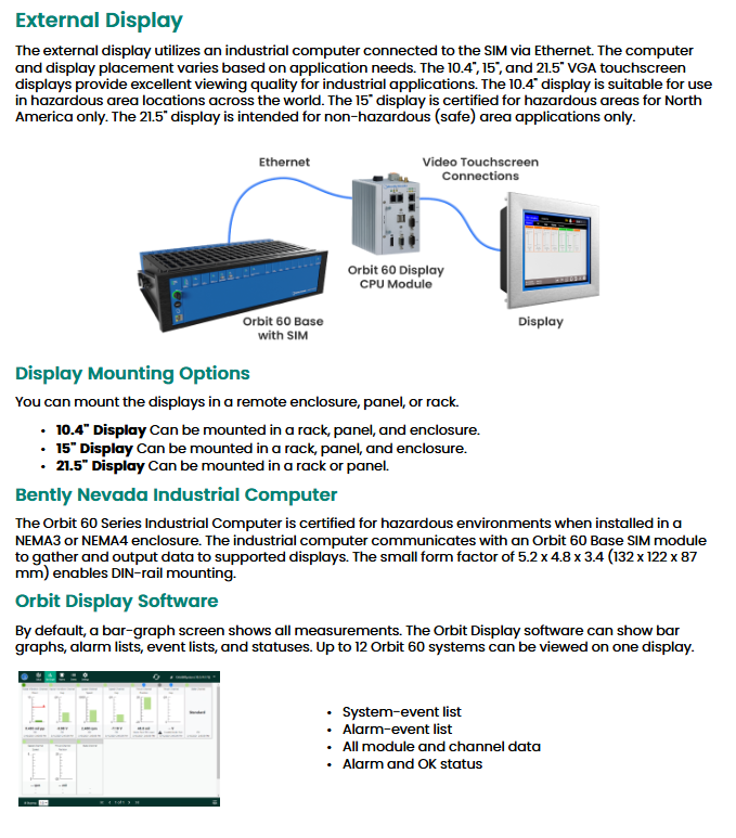 Bently Nevada Orbit 60 Series Integrated Unit Protection and Condition Monitoring System