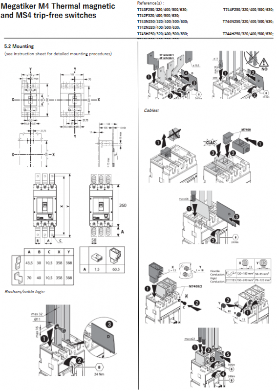 Maximum cable: 300mm ² (hard)/240mm ² (soft)