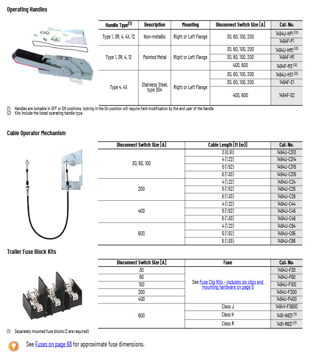 The technical manual for 1491, 1494F/G/H/U series isolating switches and fuse bases released by Rockwell Automation in March 2026 covers the full range of visible blade flange isolating switches, heavy-duty safety isolating switches, hazardous area isolating switches, control circuit/power fuse bases from 30 to 600A. It specifies model selection, electrical parameters, mechanical dimensions, installation wiring, accessory configuration, and certification standards. The entire series supports Class J/R/H fuses, with visible breakpoints, handle lockable, IP20 protection, 200kA short-circuit withstand capability, and meets UL, CSA, CE, CCC, UKCA, and explosion-proof certifications. It is suitable for industrial distribution and equipment main circuit isolation and protection.