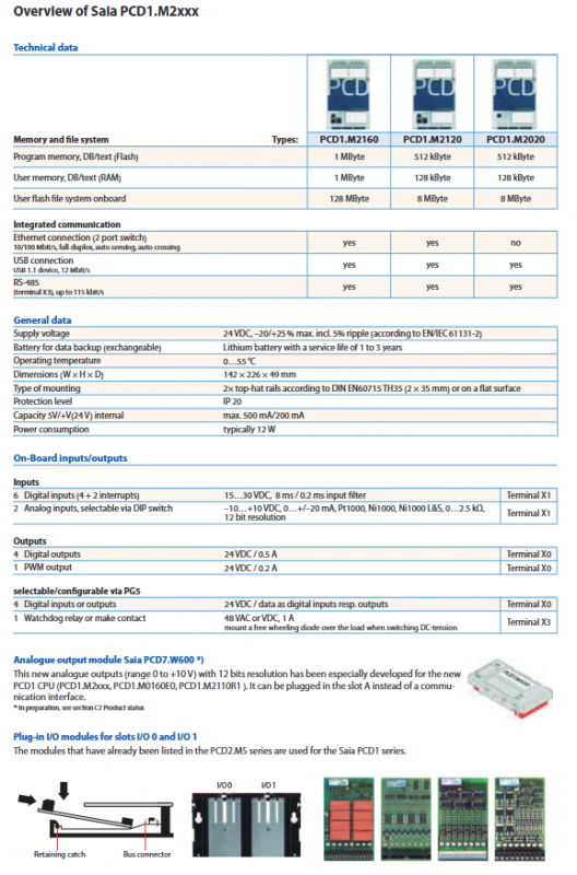 Model: PCD1.M2160 (Ethernet+large memory), PCD1.M2120 (Ethernet), PCD1.M2020 (no Ethernet)