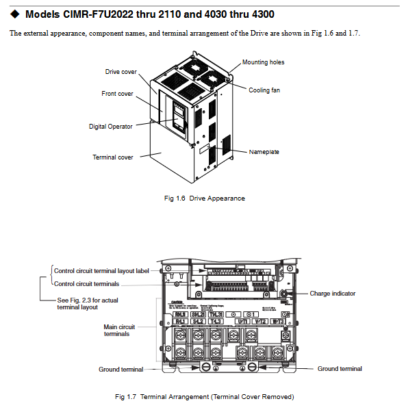 Applicable models: CIMR-F7U (208-240V/480V full series)