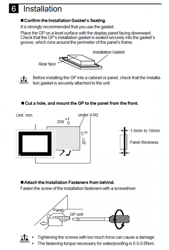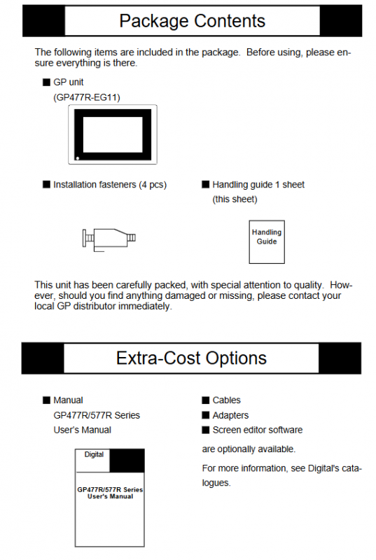 Safety and installation wiring instructions for GP477R-EG11 touch human-machine interface