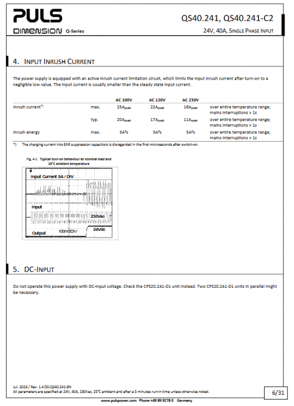Surge suppression: Active surge limiting, peak current only 17A (120V)/11A (230V)