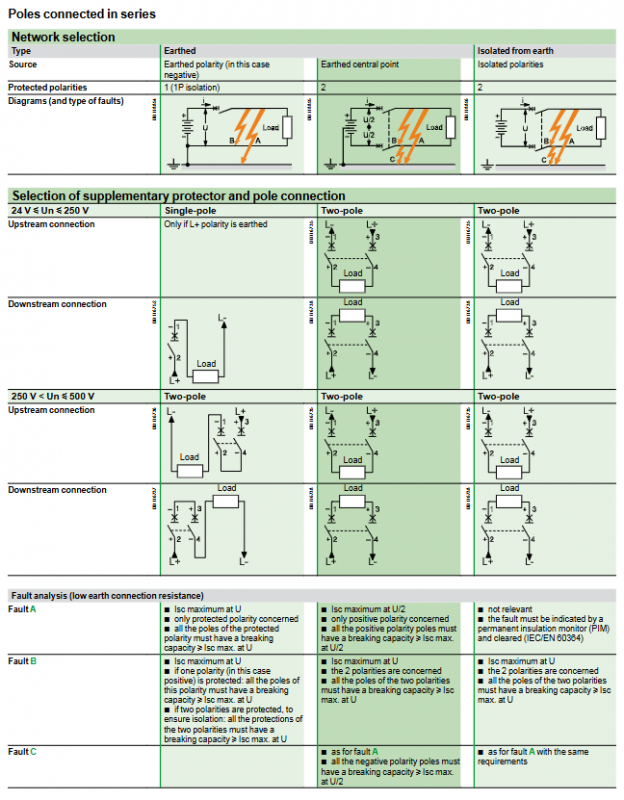 Fault types A/B/C correspond to different polarity protection and disconnection requirements