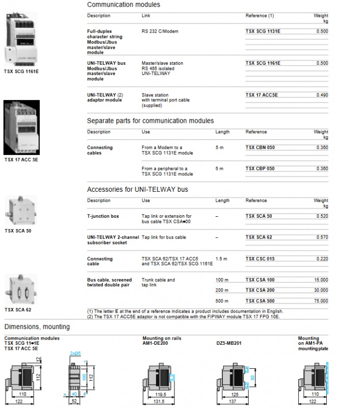 2. TSX SCG 1161 (UNI-TELWAY bus module)
